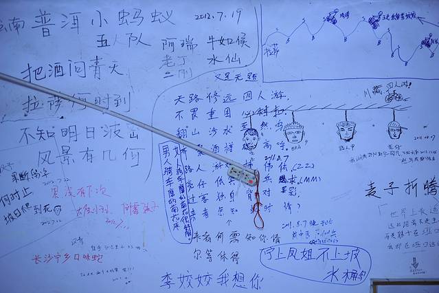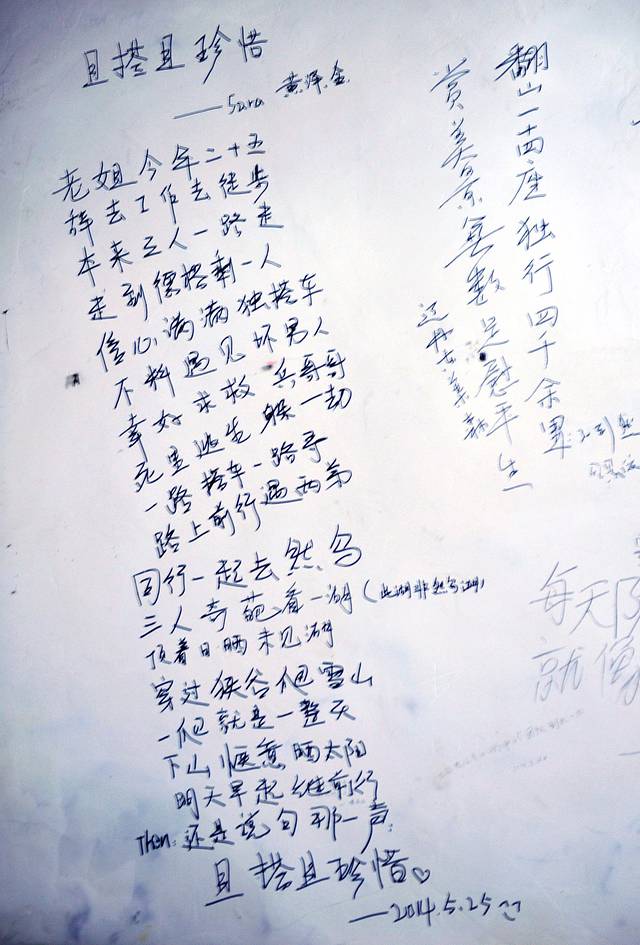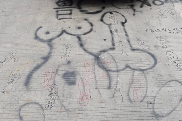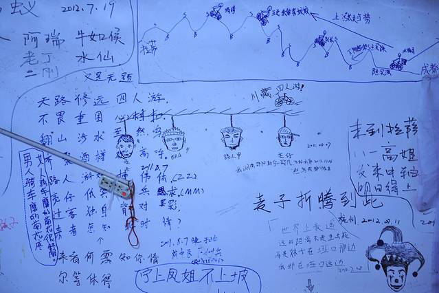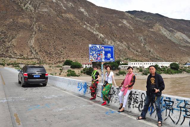 驴友在桥栏和地面留下各种涂鸦,照片中这种涂鸦的驴友太有创意了,也可能是进入西藏令他激动的雄性柯尔蒙泛滥,第一次看到进藏还能刺激这方面的欲望,该不会是进藏也能治疗ED吧!哈哈!
