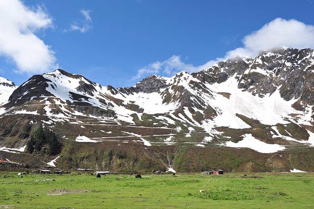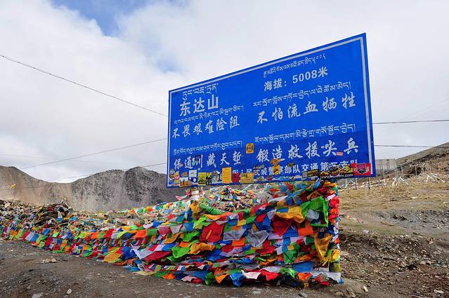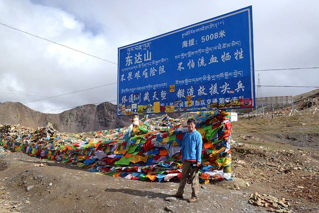 到达海拔5008米的东达山口,也是此行经过的第一个海拔5000米以上的山口。天气逐渐转为多云。