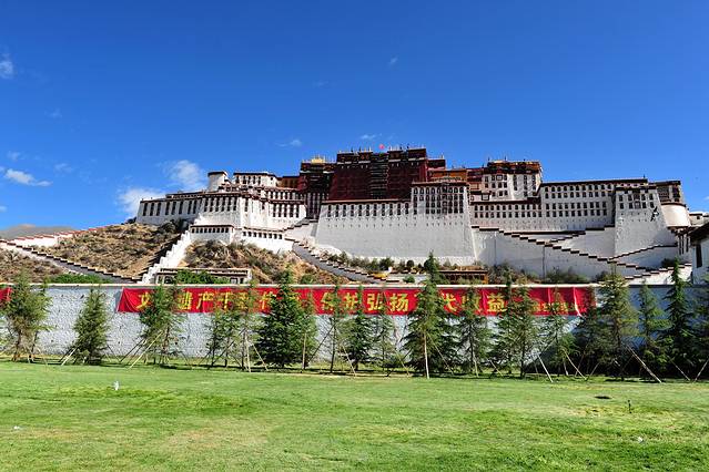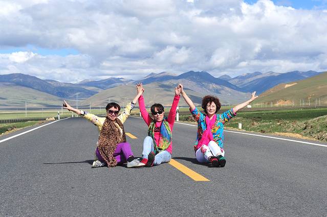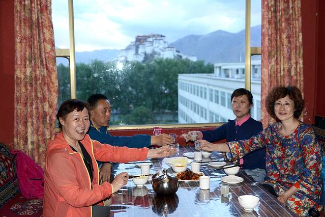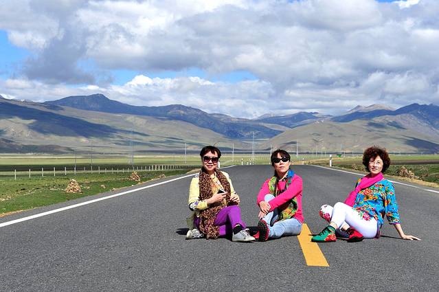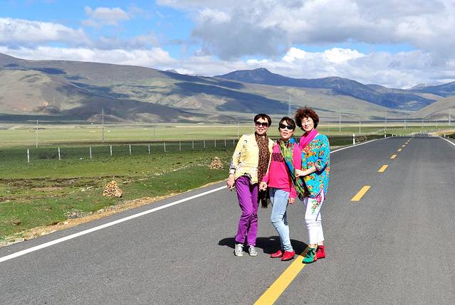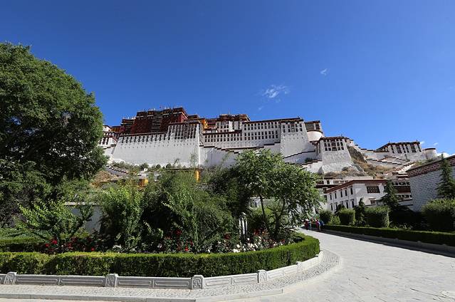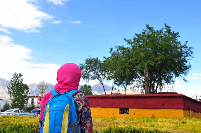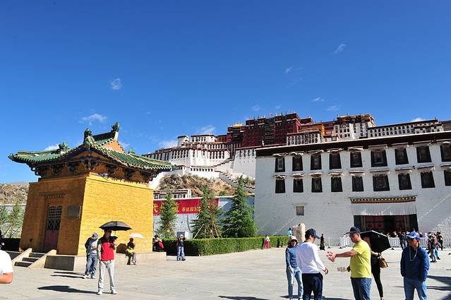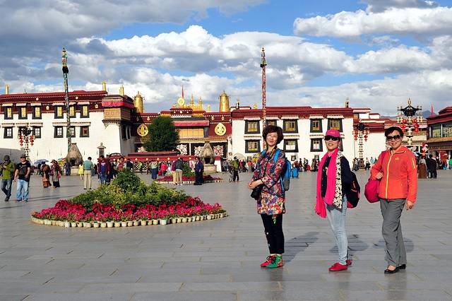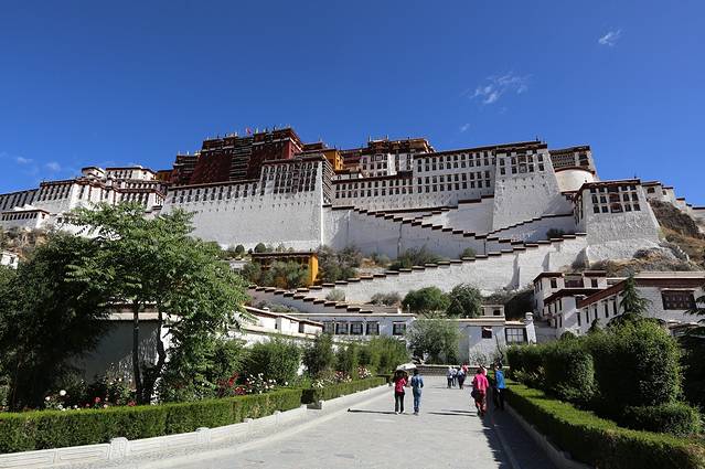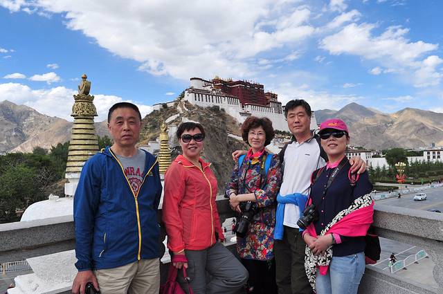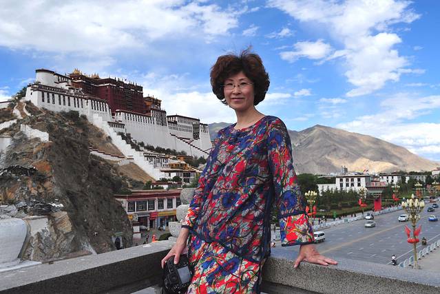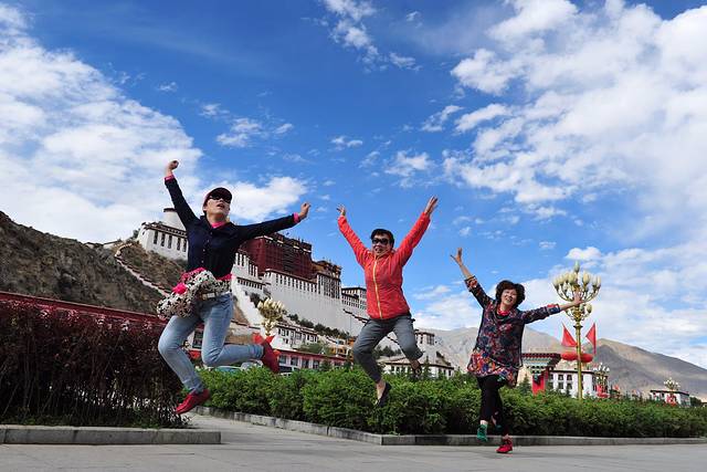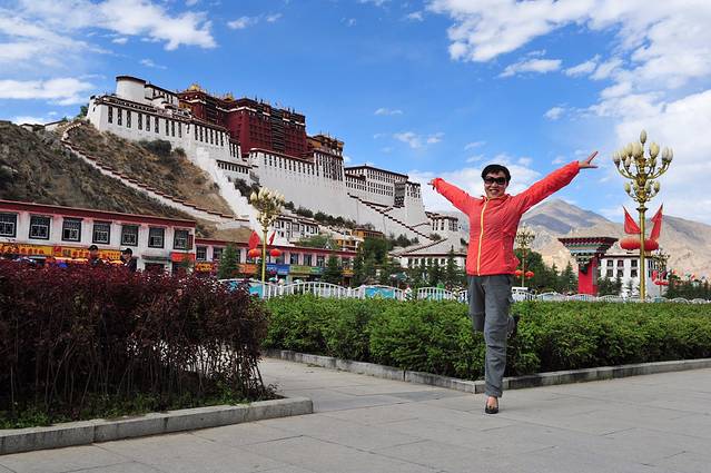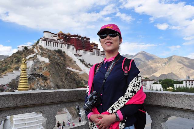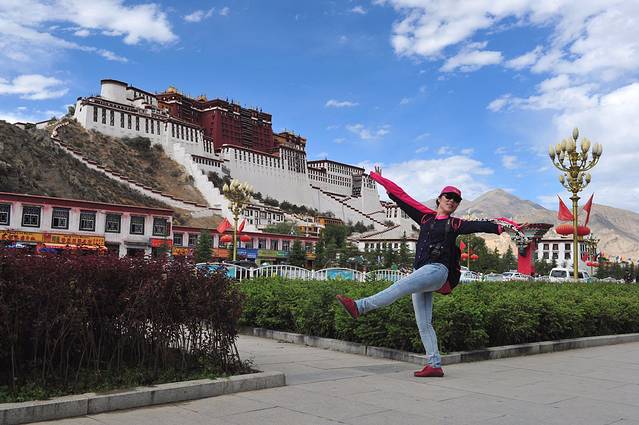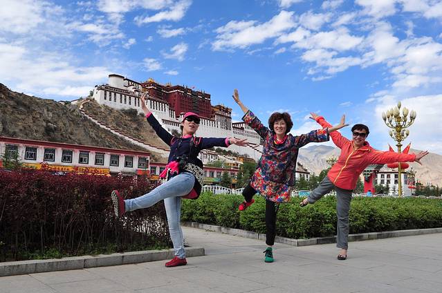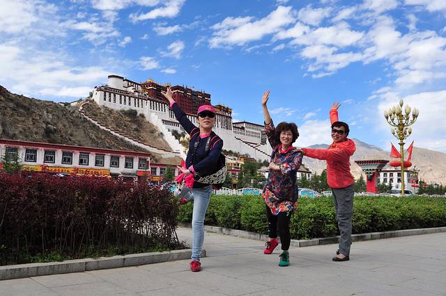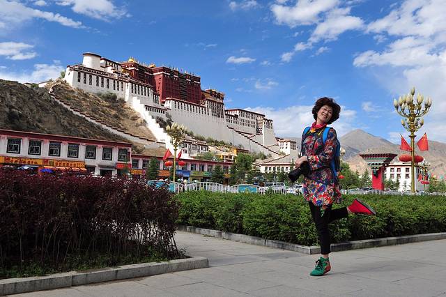 走下药王山观景台,沿北京路前行,移步换景从不同角度拍摄布达拉宫,三个女人也是异常兴奋,不停变换姿势拍照留影。