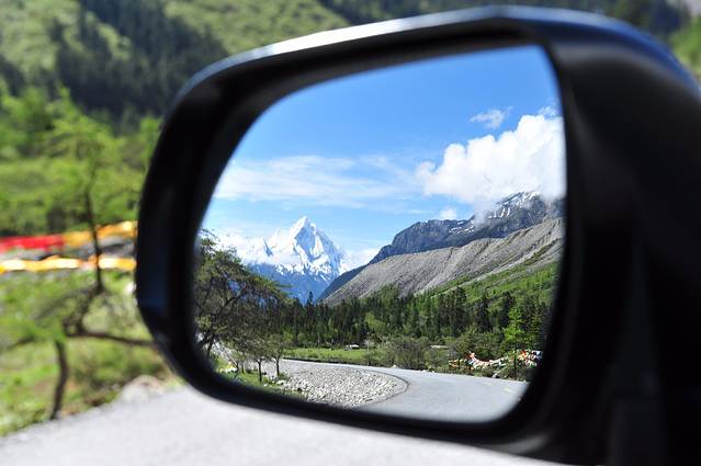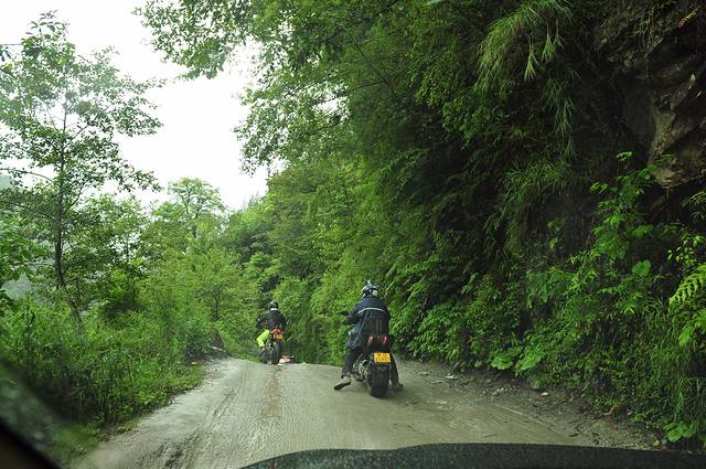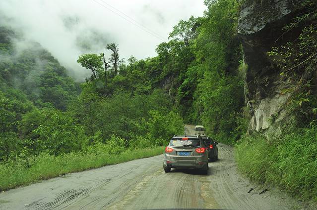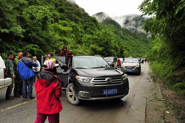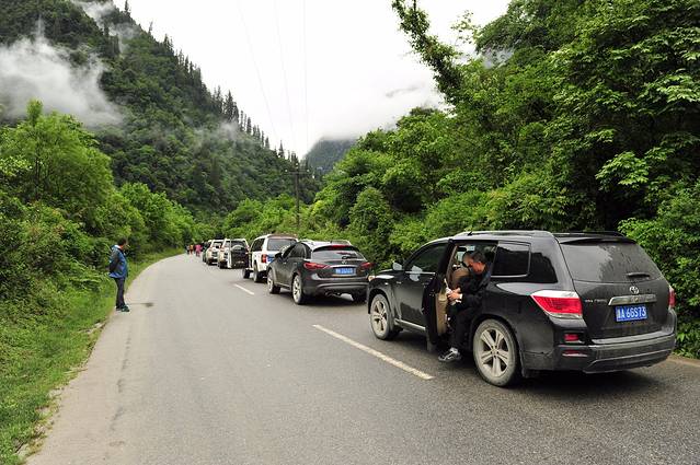 开始通行了,走了几十米,那辆广东车因为没有人让他,无法插入行驶的车队,弱弱的在左道行驶,眼看前方对向已有来车,如果把对向车辆堵住,免不了定会遭对向车辆车主痛骂一通。我从后视镜看到后,放慢车速,挥手示意他插在我前面。他赶紧照做,与我错车时,谢声不断。此后很长一段就在我前面行驶。
