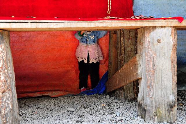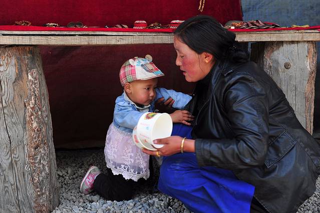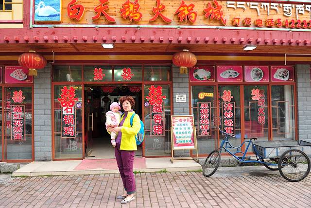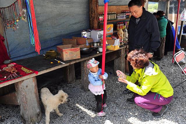 我们在此停车休息吃午饭。在这家喝奶茶,吃青稞饼。百合又与老板的孩子玩起来。