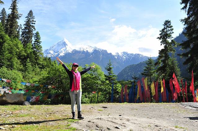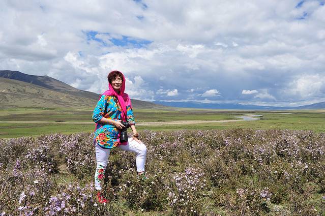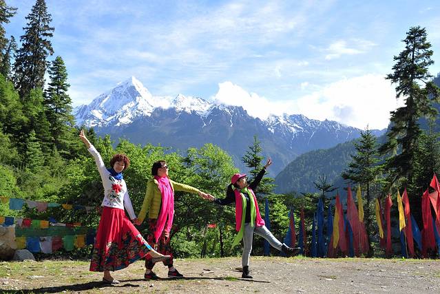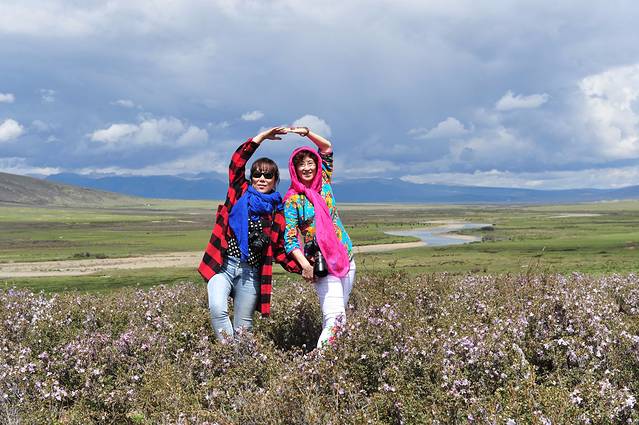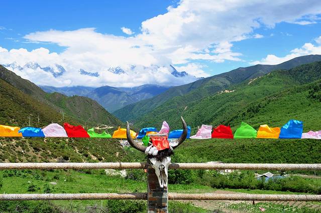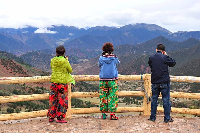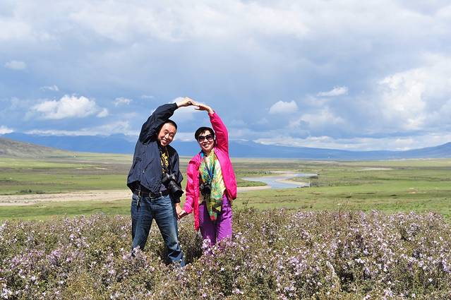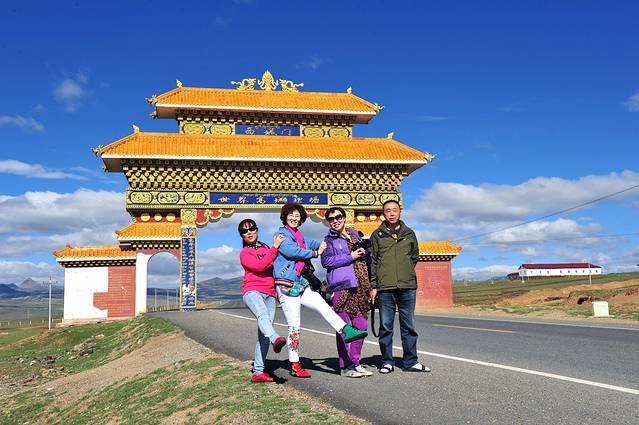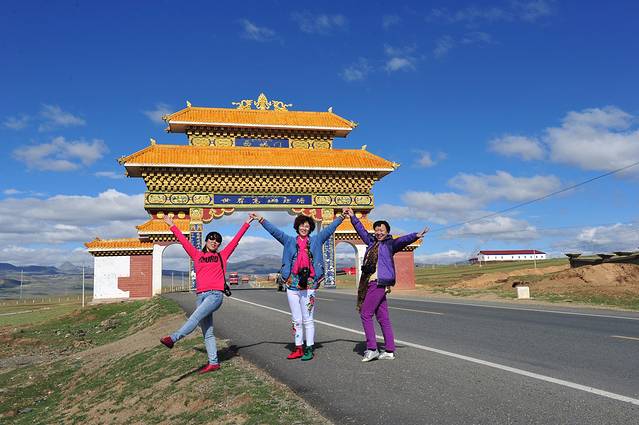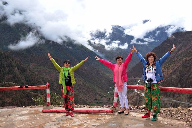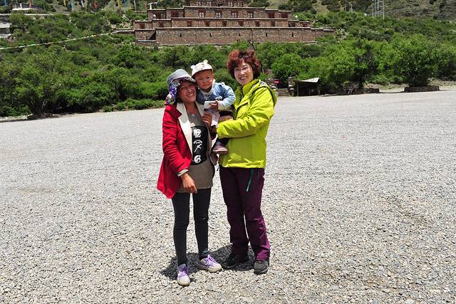 翻过折多山到达新都桥,在新都桥的瓦泽乡远眺贡嘎雪山,要爬上一个小山坡才能看到,必经之路被当地村民拦住收每人10元门票钱。登上山坡有点气喘吁吁,高反来临,我的高反第一感觉是登上山坡后,屎尿紧迫。赶紧找僻静地解决后,才去拍照,后来知道陈姐也是如此高反,哈哈!