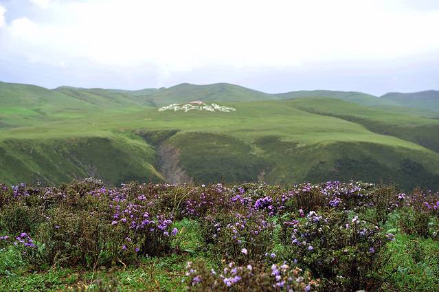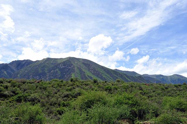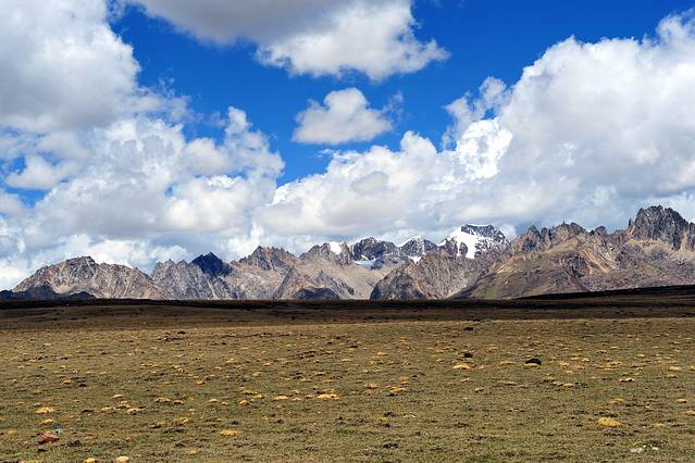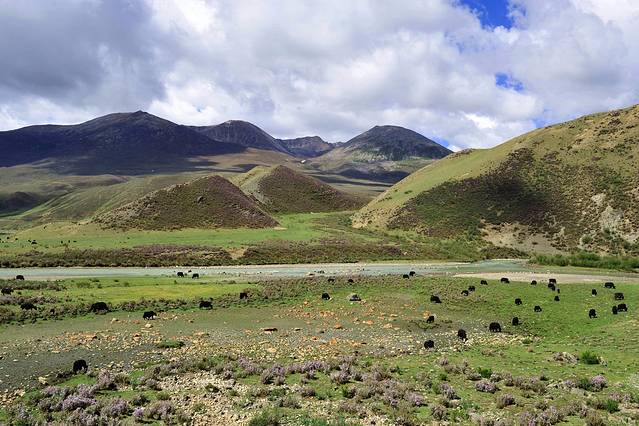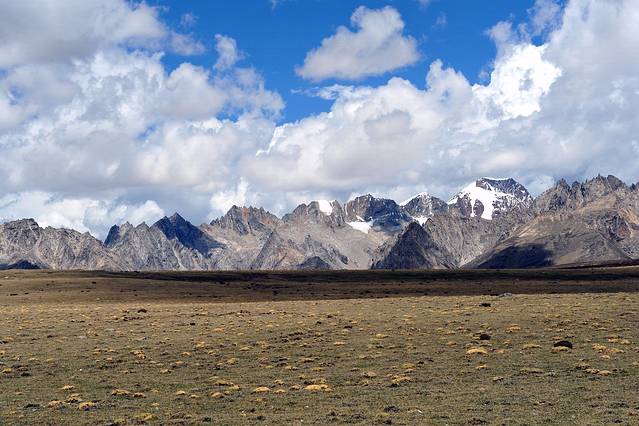 出理塘西城门,G318沿无量河谷上行约30公里到达大毛垭草原,国道318线沿着草原北部穿行数十公里。大毛垭是相对县城所在的小毛垭而言的,属川西高寒草原,是沙鲁里山脉中最大的山间草原,
