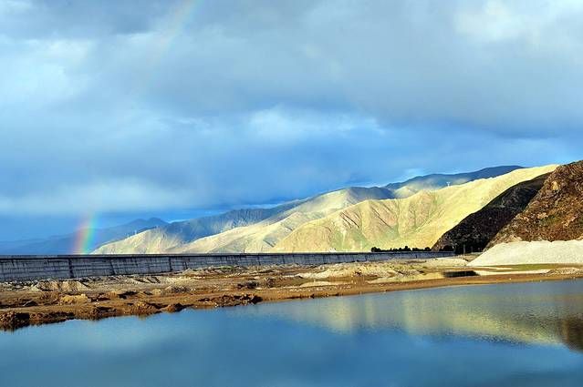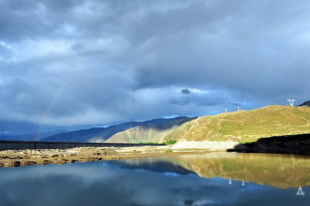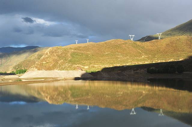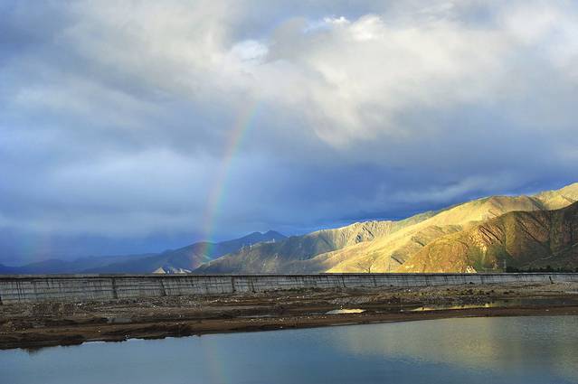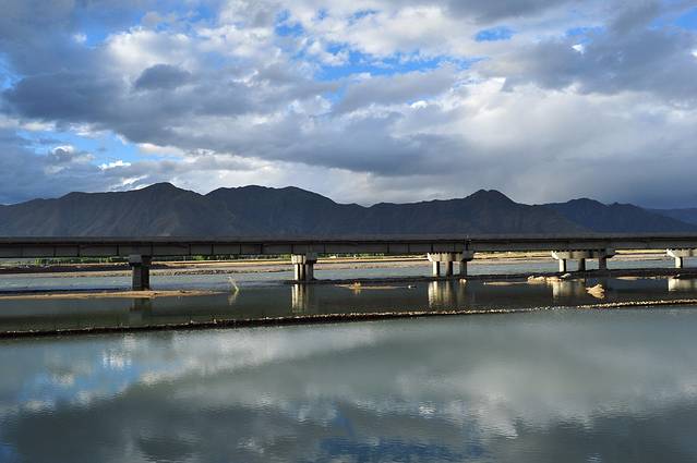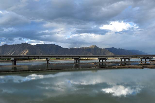 临近拉萨,沿岸落日前的美景再次吸引我们停车拍摄。