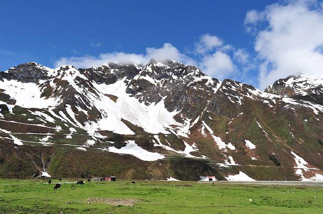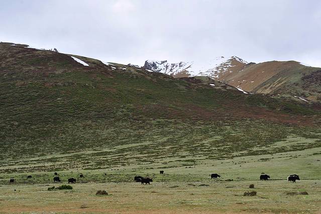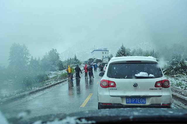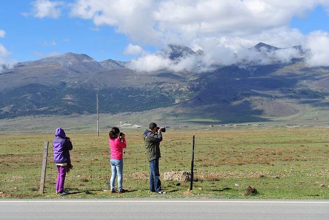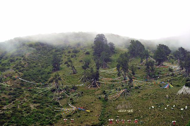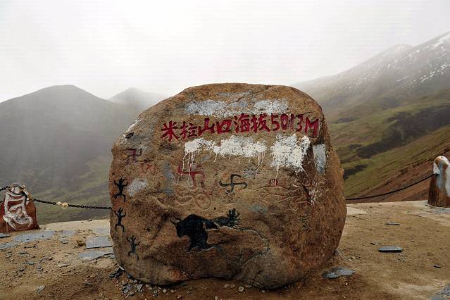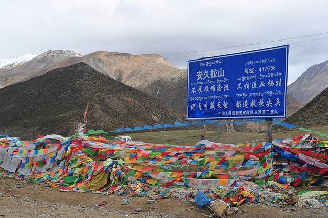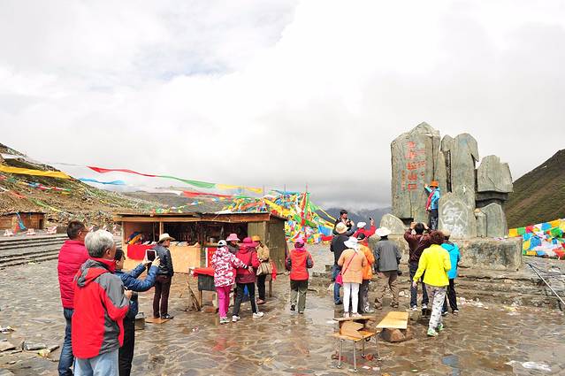 继续前行,到达进入西藏后的第一个山口,海拔4150米的宗拉山口。天气有些阴雨。