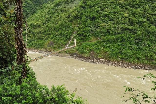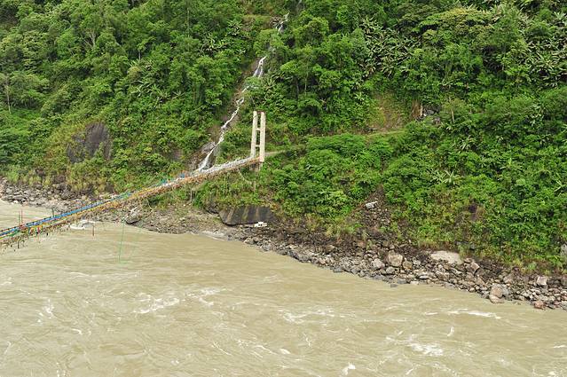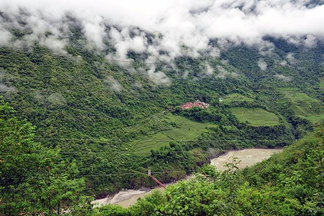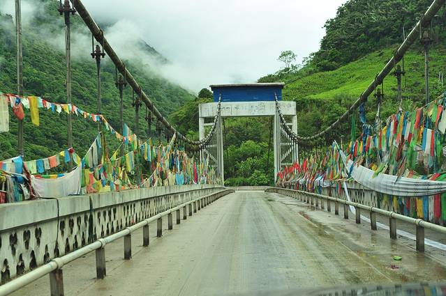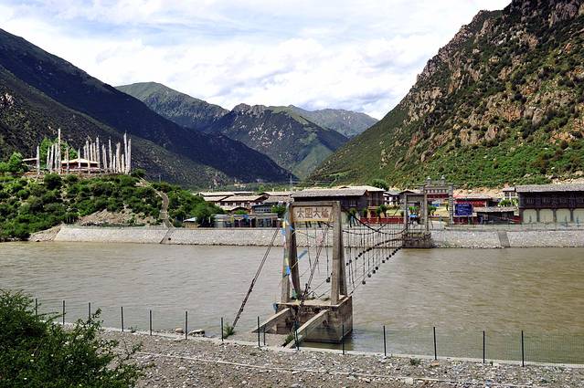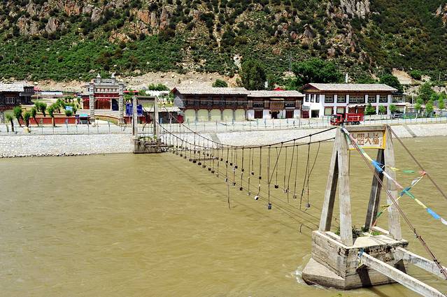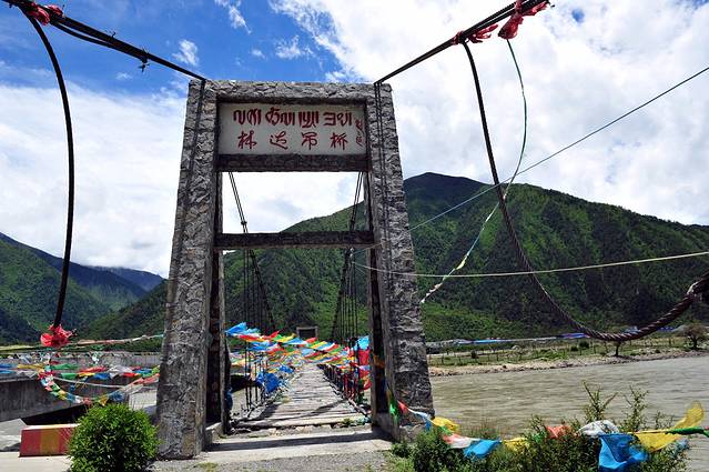 到达林达吊桥,是一座老桥,桥对面的小村子,据说就是阿沛阿旺晋美的老家。