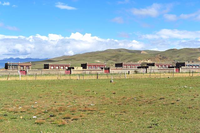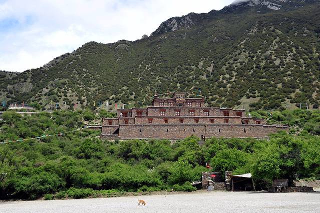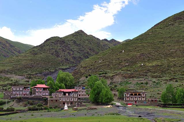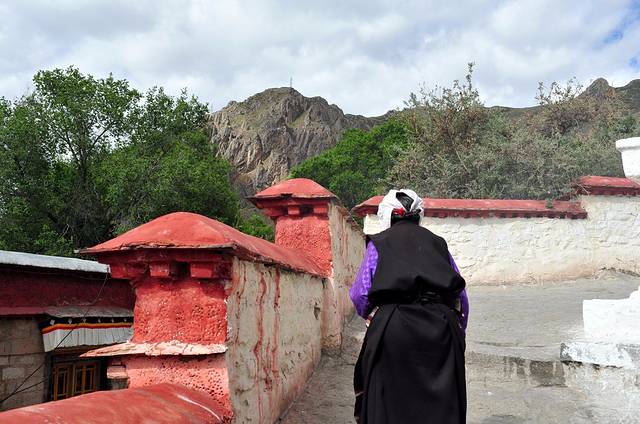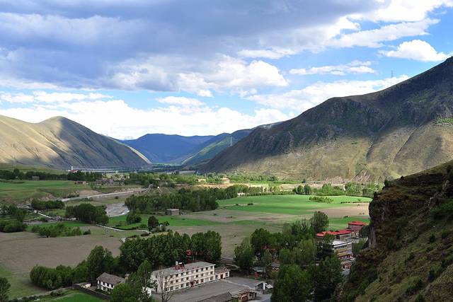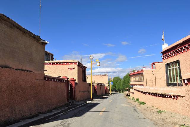 途径秀巴古堡,天气继续晴好。秀巴古堡已有1600多年历史,是西藏年代最古老、历史最悠久、古堡群最密集、结构保存最完整的古堡群,内设有整个西藏最大的转经筒,整个古堡群是被一个方阵所环绕包围。我们没有进入古堡群。