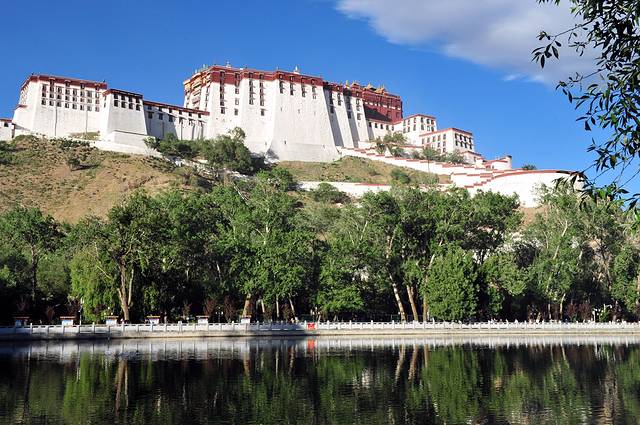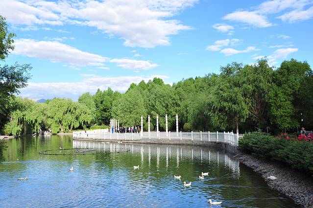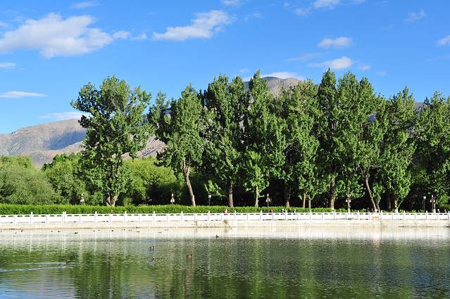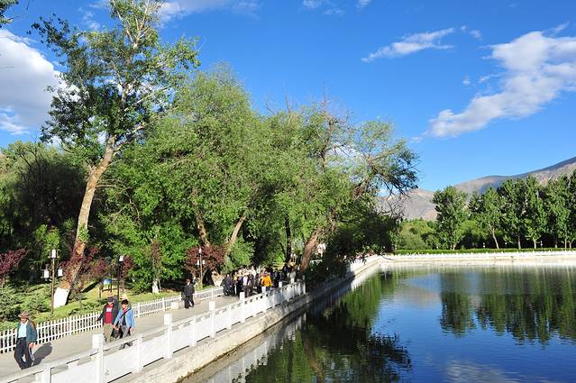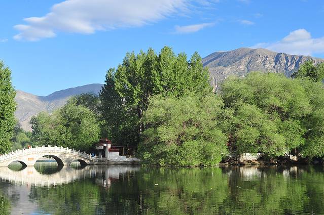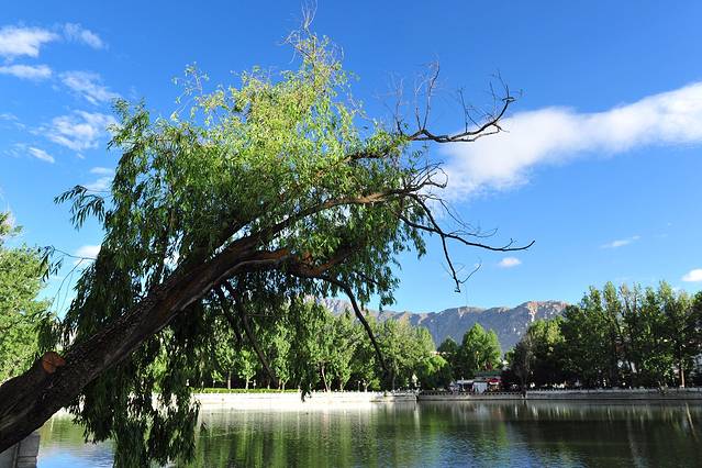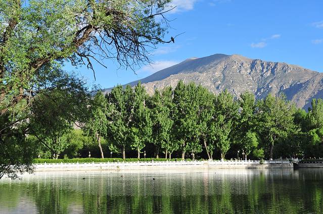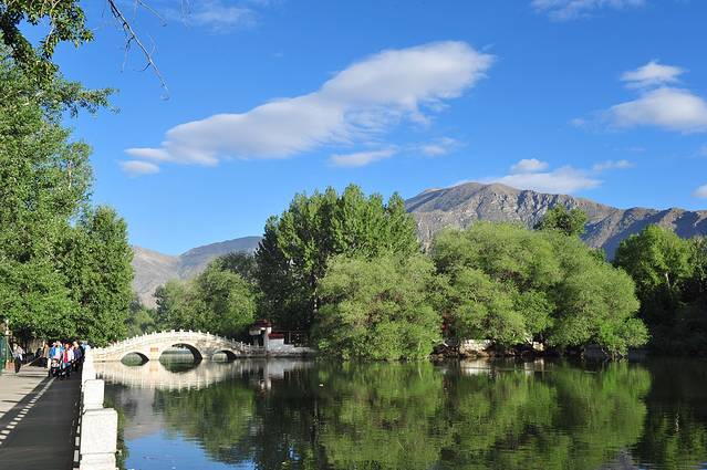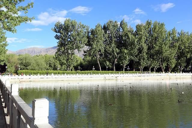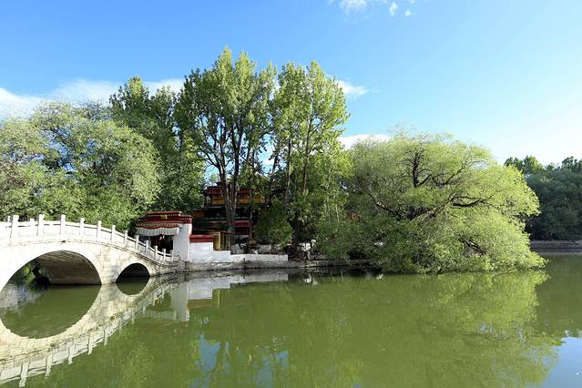 各个角度拍完布宫的背面和倒影后,我们又绕着龙王潭转了大半圈,拍摄龙王潭。