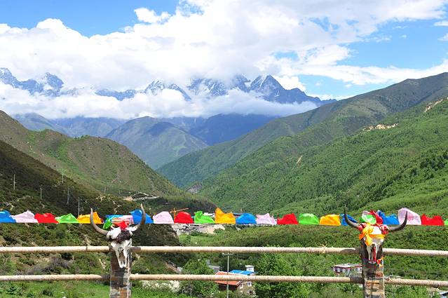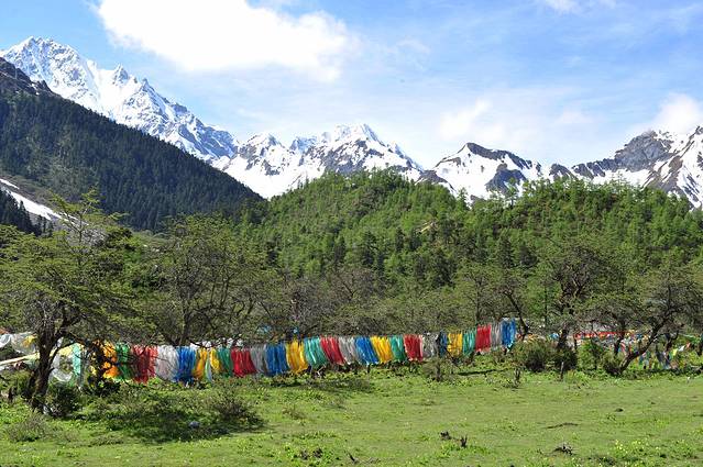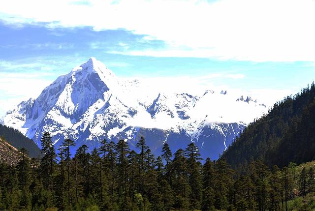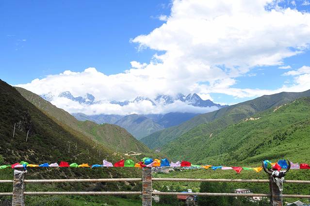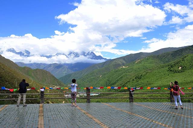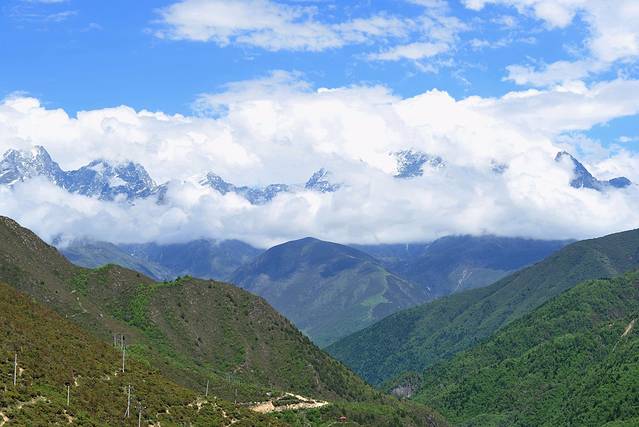 站在山坡顶,其实只是看到贡嘎雪山顶部的一条雪线 。