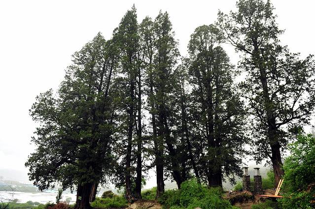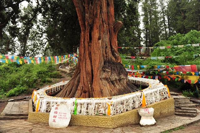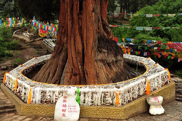这株十几人才能环抱的巨柏,高达50多米,直径近6米,树冠投影面积达一亩有余。经测算这株巨柏已有2000-2500年树龄。