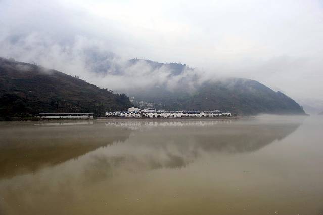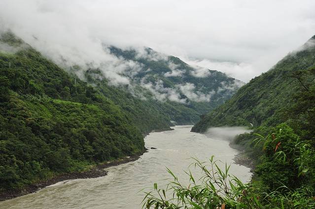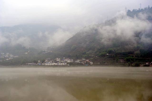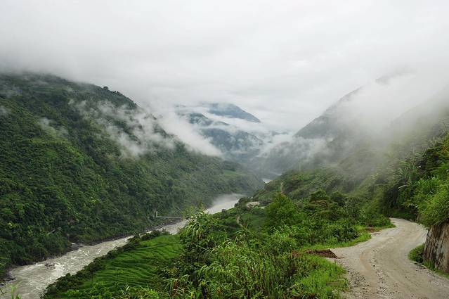 6月3日由石棉出发前往泸定,沿着雨雾蒙蒙的大渡河岸前行。
