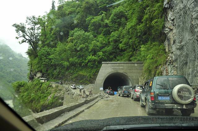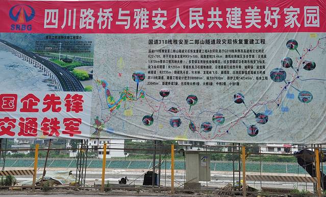 一路到了雅安才看到前往二郎山隧道的道路因施工不通。