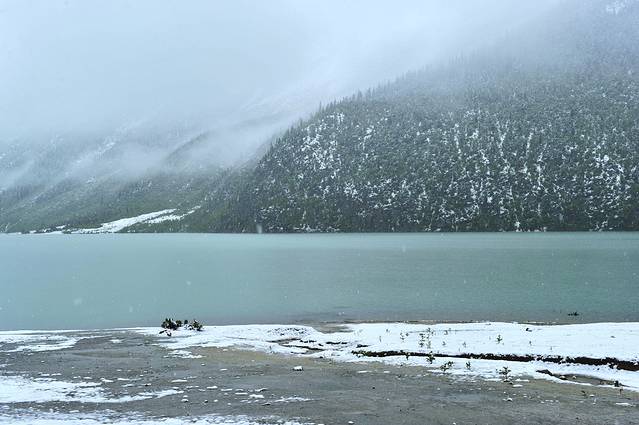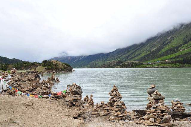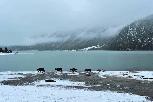 到达然乌,安排好住宿,吃完饭,天还没黑,就开车沿着公路到下然乌湖兜了一圈,天气阴沉沉的,时不时飘点雨点。随意拍了几张照片。然乌湖的恬静还是可以感觉到。