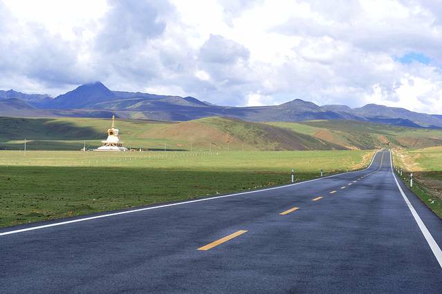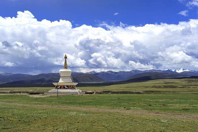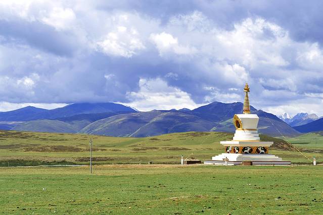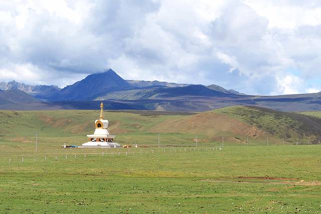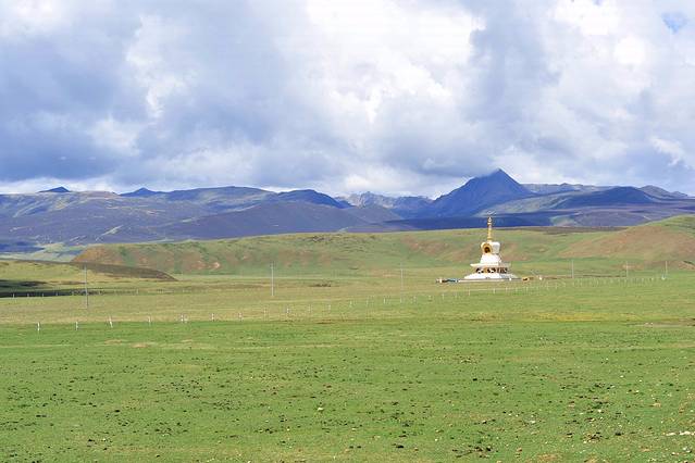 即将使出大毛垭草原时,远远的看到这座大白塔,周围视野开阔,风景漂亮,便决定在此停车休息用午餐。