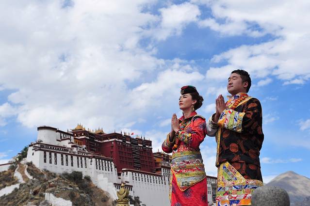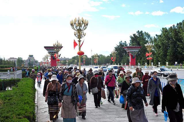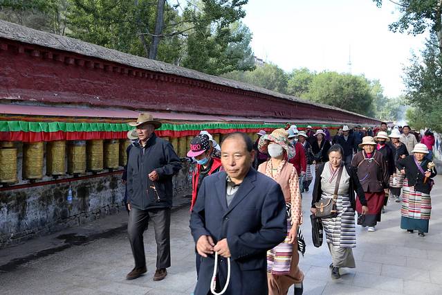 围绕着布达拉宫转经的人浩浩荡荡,络绎不绝。