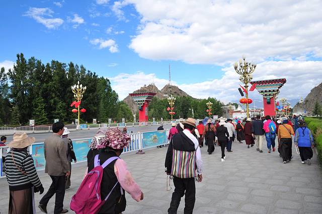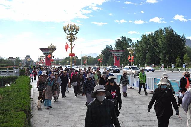 来到布宫前面的北京路,转经人依然摩肩擦踵,川流不息。