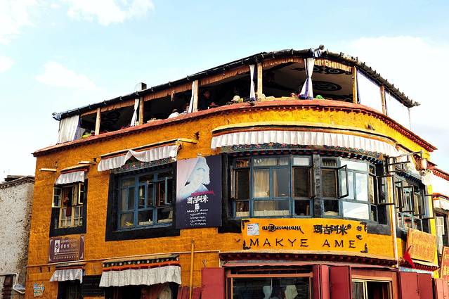 逛完八廓街,寻找离八廓街不远的可以拍到布达拉宫夜景的老鱼饭局饭店,很快到达饭店。
