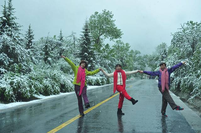 瞬间又是风雨雪交加,气温只有4摄氏度。