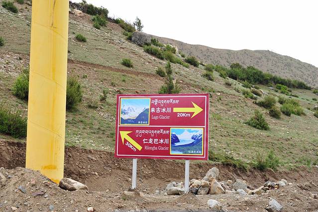 看到岔路口的指示牌,我决定先到远的地方,即先去仁龙巴冰川。