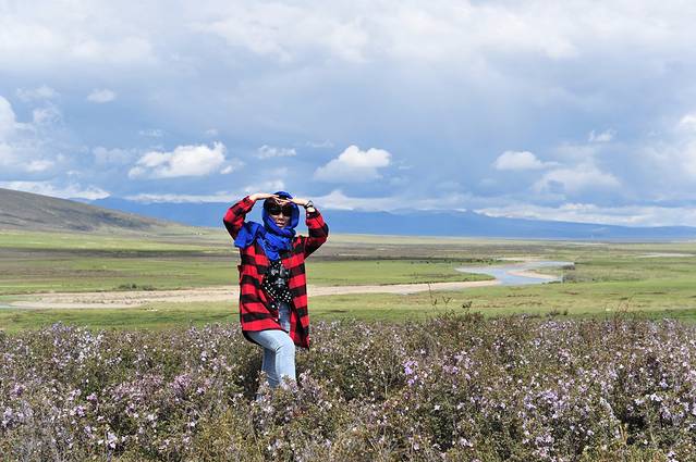 G318穿过大毛垭草原的这一段公路左侧的风光异常漂亮,我们走走停停,边行边拍。