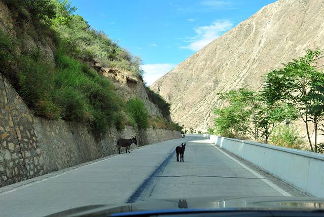 被涉世未深的小毛驴挡住去路,遇到这种情况,我从不鸣笛强行通过,便靠边缓慢行驶,并停在路边,直到站在路边的他母亲叫他,小毛驴才欢快地离去。