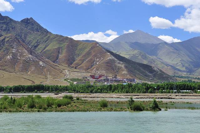 6月15日,在拉萨进行此次行摄的首次休整,上午童大哥和下午茶一安奈不住,先行前往罗布林卡和博物馆。其余人直到下午才出门前往布达拉宫。出客栈所在小区大门,对面就是拉萨河。