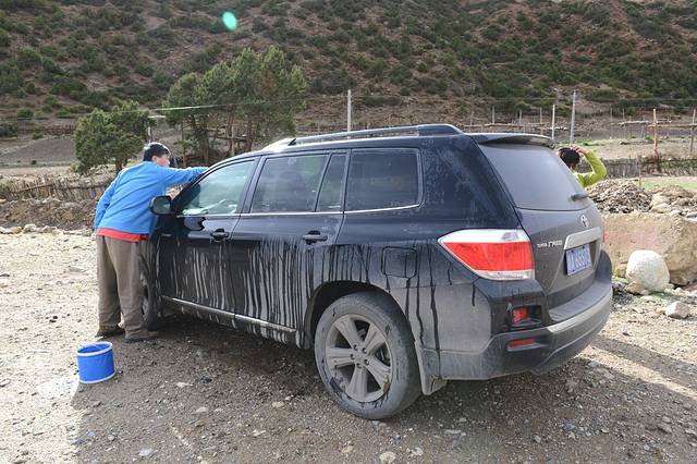 下山后临近左贡,看天色还算早,便把车开到江边洗车。