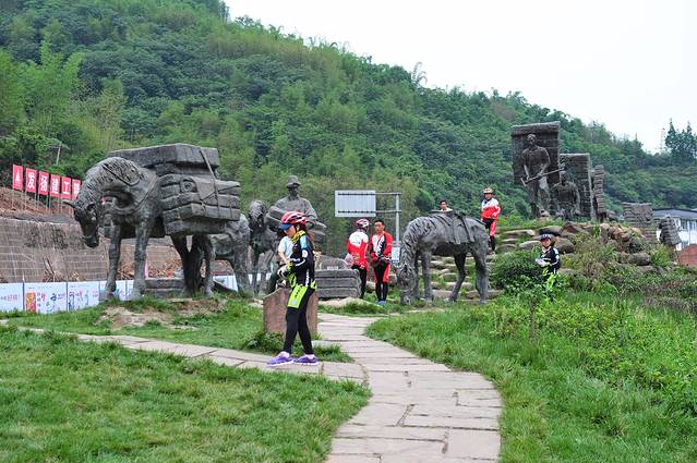 按照路牌提示查看地图前往荥经县,计划经天全县、二郎山隧道往泸定。一路颠簸泥泞,下午5点多到了天全,却被路边交警告知,天全往二郎山道路实行单双日白天单向通行的交通管制,我们要等到对向车辆全部放行完才能走,估计要晚上9点以后才能走,那样到今天的计划目的地泸定要后半夜了。当即决定今天只能再回到荥经,绕道雅西高速到石棉食宿,到达石棉已是晚上8点多。经过雅安城雕群,有很多骑行驴友在此拍照留念。