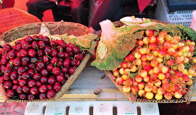 中午时分到达泸定时,已是阳光明媚。正是当地樱桃丰收时节。20到30元一斤,我们买了很多。