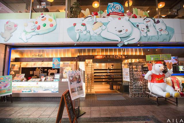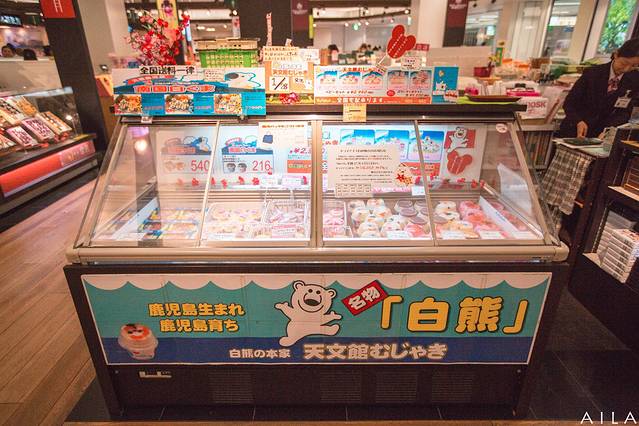 中午回到天文馆吃午餐,去的路上遇见了,这里的名吃白熊沙冰。它的知名度相当于北京的北冰洋、西安的冰峰。总之人气很高的说。因为下着大雪,加之肚子有点饿,所以我们这里路过并没有买,这一举动让我华丽丽的错过了在店里吃到它的机会,如今想来追悔莫及。