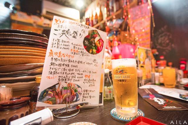 这里会聚了25家特色小店,这里保留着最早路边摊的赶脚,爱拉觉得这里有点像新加坡的路边摊。里面可以品尝到很多鹿儿岛美食,我们选了一下吃海鲜刺身的居酒屋,真切的体会了一下日本的饮食文化。