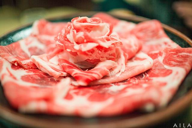 看看这色泽诱人的猪肉,锅开了以后将盘子中央的玫瑰花五花肉片,一股脑放进高汤涮锅里,然后什么调料都不要,白嘴儿吃就已经香到爆表。