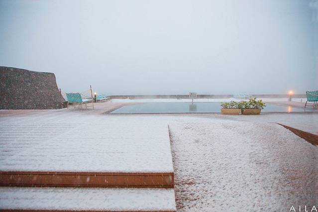 放一张此刻露天温泉的情况,可以图片无法听到狂风大作的声音,以及感受到出去就冻成狗的温度。