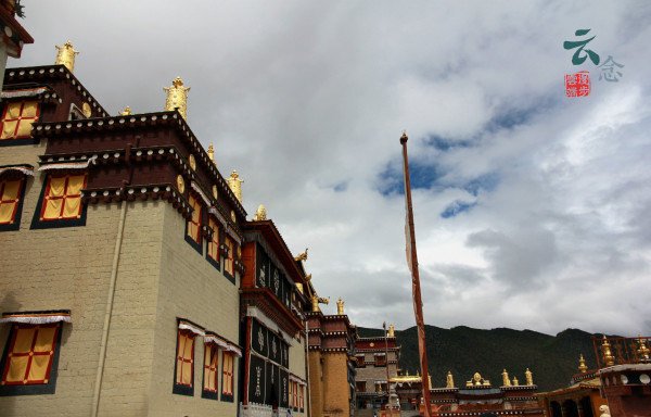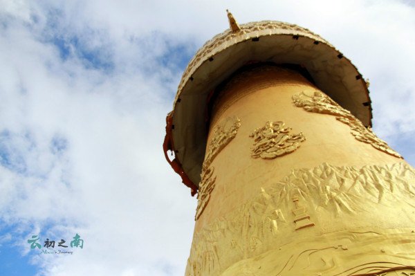 阳光下,流云掠过,转经筒金碧辉煌,直插云霄,世世代代护佑着这座月光古城。