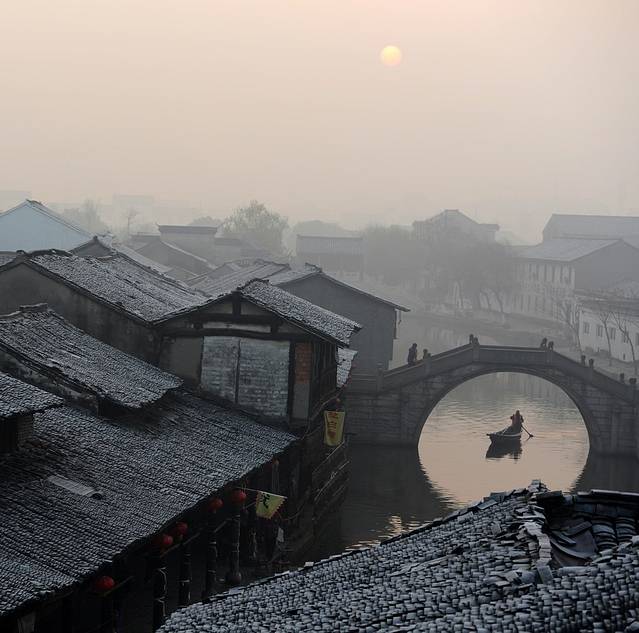 这是一座色彩浓重的水城。悠悠古道上,绿水晶莹,石桥飞架,轻舟穿梭。