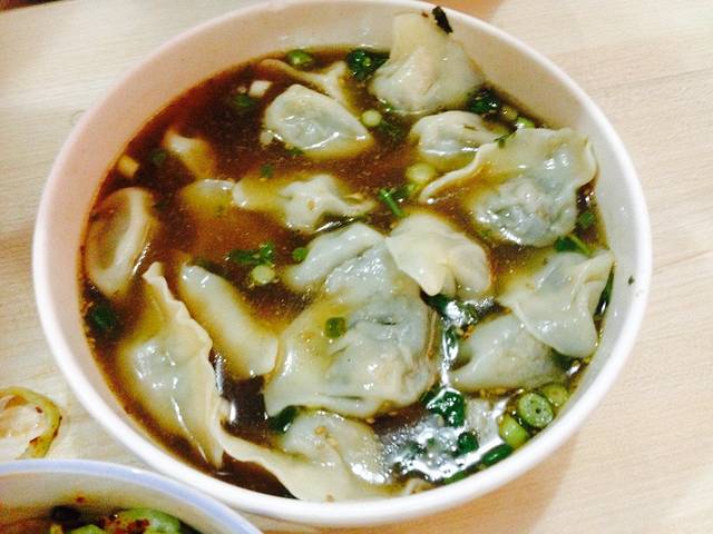 酸汤水饺,8块钱24个,又是撑死的节奏,已经是小碗了怎么还有辣么多虽然吧,包饺子的同志收了钱之后没洗手又淡定的包着他的饺子想着人家都是这么吃的如果不拉肚子那我也就不讲究了。。。没想到第二天没拉肚子而且这个酸汤是我吃过的饺子汤里最最最美味的了,汤底喝了个底朝天,大概和包饺子收银的同志热情的给我加了点蒜蓉也有点关系吧
