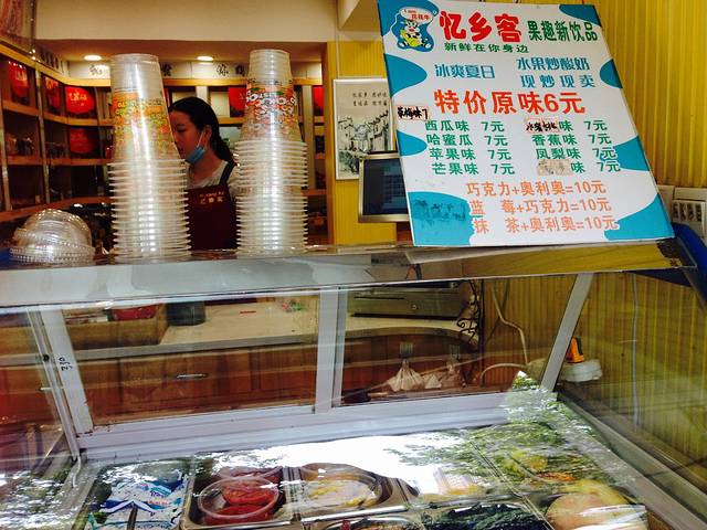 吃饱了在附近逛逛,八月下旬上海下大雨这里却艳阳高照热傻了,想喝酸奶没看到倒看到了这家炒酸奶,好神奇啊,炒一炒变成一块块的,味道是酸奶味口感比冰块软,又有点像奶酪,七块钱可以炒出两杯来,含在嘴里非常消暑,好好吃的,在上海没看到过,后来在开封夜市只卖五块钱,好吧,可爱可亲的物价~里面还有葡萄干、山楂、核桃,很有料呢,吃到山楂的时候酸酸甜甜冰冰凉凉,太美好了~