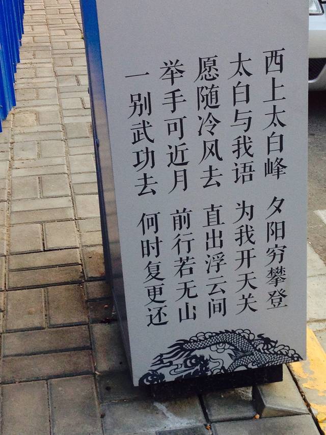 爬山太累在最适合连诗的山上都没心思作诗了,看到每个垃圾桶上都有这首诗,就品一品赏一赏吧