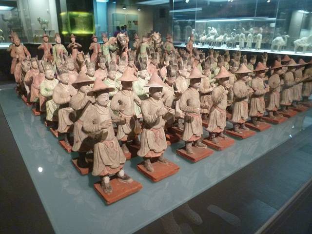 其实这里也不是很大,主要是三个时期的展览加上珍宝馆加上200块的壁画馆(不是专业的要么是土豪才会去看的吧)加上机动展高棉的微笑(看过龙门石窟顿时觉得吴哥窟很一般啊爬楼梯还费力),租了个讲解机,工作人员还说那天是工作日而非节假日人还算少的。。。循着展厅一、二、三看过去,一展厅是里全是人人头,很快就看完了,因为实在不喜欢人挤人的,心情都没了。二、三展厅在楼上,人稍微少点,想到前一天看的洛阳博物馆,前者是菜场后者才是博物馆清静的氛围啊。中午外面没有队排进不来,里面很多人也选择一边坐着凉快休息,展厅的人就少了很多,我就仔仔细细的二刷了一展厅。具体印象很深刻的是人造兵马俑和石窟。。。看太多了都记不得了,记得的是最后一天看的西安博物院里的东东了。。。大概是白看了吧。。