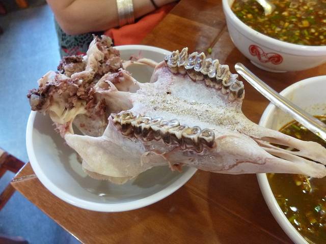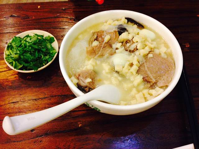 餐厅名字是穆盛祥,下午一点还是人声鼎沸的,生意可好了,心中大喜大概是来对地方了,应该是当地人喜欢来的地方~是的,就喜欢挑贵的点,要了优质生炝羊肉烩面和酸辣小炒,要不是只有两个人就会点手抓羊肉之类的,无奈胃装不下。。。优质羊肉烩面真是人间美味,里面好有料的,羊肉是孜然味的,好香,还有些粉丝、鹌鹑蛋、金针菜等等,和麻麻抢着吃~另一份酸辣小炒本来以为是小菜来着,没想到是炒面片,过于酸辣,第一天到河南低估了这里人重口味的承受度,我是完败了啊,辣到吃不下去了,就把好吃的羊肉吃下去了,面片还剩了不少,即使是问服务员要了盆清汤蘸蘸还是好酸辣的。。。晚饭还是在这家吃的,要了优质羊肉泡馍,木有烩面惊艳,羊肉的量也比中午少,不明所以。倒是卤的鸡爪超超超美味啊,除了略辣一点别的都好,好酥嫩的说~晚上门口还有烧烤,要了羊肉串,也是超超超美味的,这边烤的还有羊内腰和一些怪怪的问了因为口音也木有听懂的东东,好遗憾木有尝试。。。