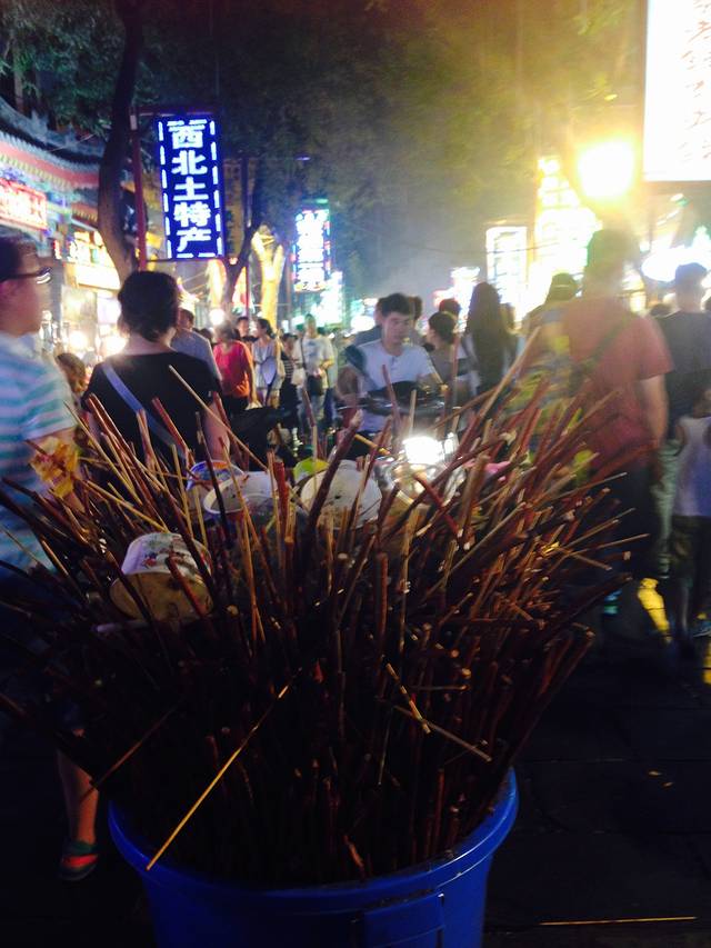 走到钟楼大概一站多地铁的样子,不知不觉走到了传说中的回民街,来之前我是有多期待大名鼎鼎的回民街啊,规模的确是名副其实了,就是味道和价格实在是让人爱不起来。看到一家老孙家泡馍生意很好就走进去了,点了水盆羊肉35块和凉粉,味道一般吧,配的白馍还真是蛮难吃的,在习惯了河南的物价一下子蹦到了这里的物价觉得不太能接受,特别是夜市摊头上热门的红柳枝烤羊肉串,10块钱三块小肉,比上海的还要贵,埃玛,不好次啊,红柳绿柳白柳都没用,熏烤的味道一直在嘴里挥之不去。。。边上一条街专门卖纪念品的,价格也是辣手的,以前去一些老街明知每个地方卖的东西都差不多,但是总会有些特别便宜又好看的东东可以淘淘,这里就不行了,价格翻倍。这么一兜下来好没劲的,吃的不好吃,用的买不上,只能灰溜溜回去了,再也不想去回民街了,失望的来,慕名而去败兴而归。。。