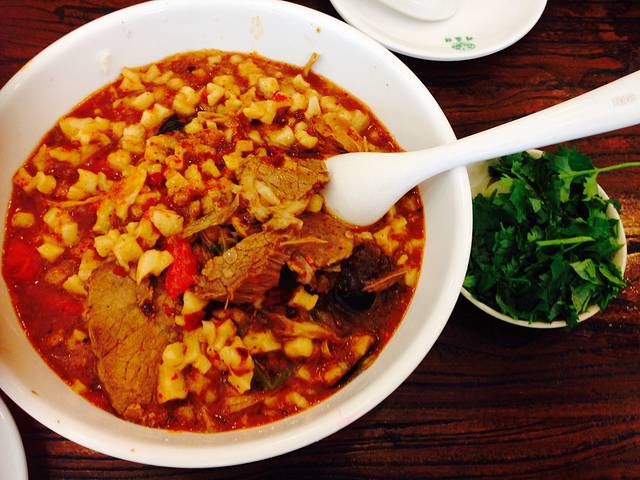 羊肉烩面,和上海的挑不起食欲番茄烩面很不一样。撩下去里面有好多羊肉,好好次,面的口感一般,喝汤吃羊肉就很满足了~