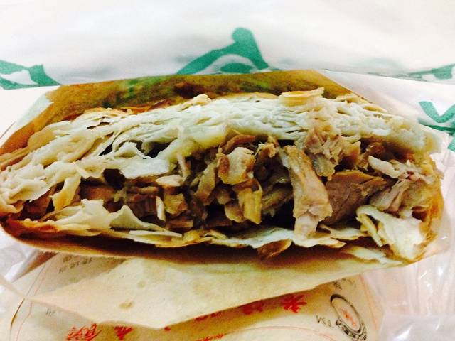 想着第二天早上要去太白山,买了个潼关优质肉夹馍8块钱当第二天早饭,热乎乎的新鲜出炉的实在不忍放着它冷去,咬上一口便又觉得这是我人生中吃过的最好吃的肉夹馍知道潼关肉夹馍的特点是饼皮脆,居然可以那么脆,这千层的水平好高超,虽然很撑很撑可还是啃了好几口,真是欲罢不能,不是没吃过肉夹馍,只是这个太赞了,再吃下去我大概就可以激动流泪了。