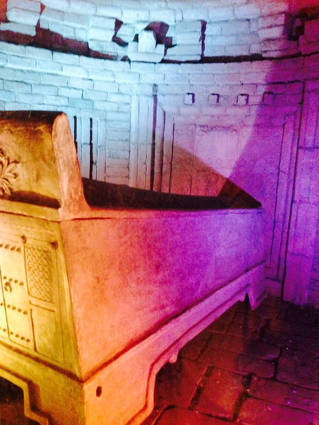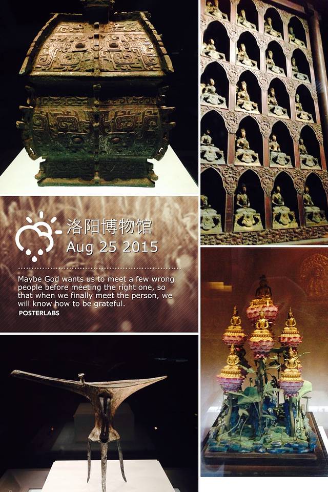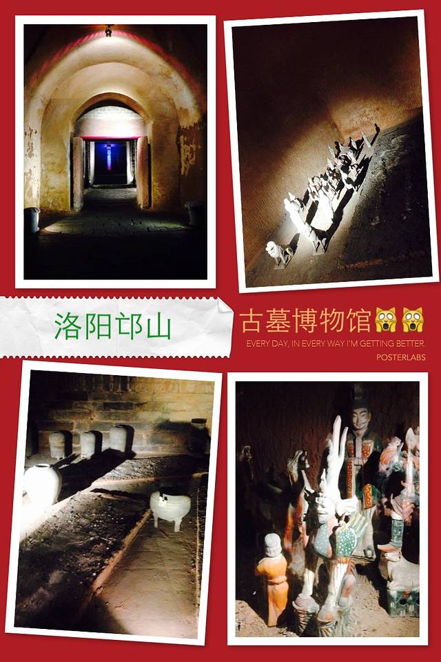 因为盗墓笔记中毒太深,所以来洛阳玩做攻略的时候看到了这家那么有特色的博物馆就想怎么也要来一下见识一下。从王城广场出发换了两部公交车到了,大概也就一个小时的样子吧。现在免费了不收门票了,九点钟开门九点多进去的,人不是很多,最刺激的就在地下一层,昏暗的光线加上布置真有种置身于古墓中的感觉,特别是有个地方一下子灯就暗了,真是吓死我啦。。。