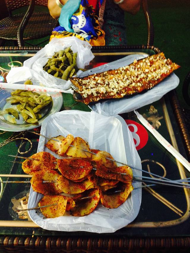 晚上去了老集,原来是夜市一条街啊,从开封到洛阳最后到西安,夜市的规模越来越大,我真是惊呆了,好喜欢这种氛围~洛阳夜市的东东很好吃的,又便宜又好吃,鱿鱼10块钱6串,还有多元化鱿鱼须或是鱿鱼片可以选择,串炸里脊5块钱n串,比开封里脊好次可惜从龙门石窟下来太饿了先吃了点垫了饥,又吃不下了