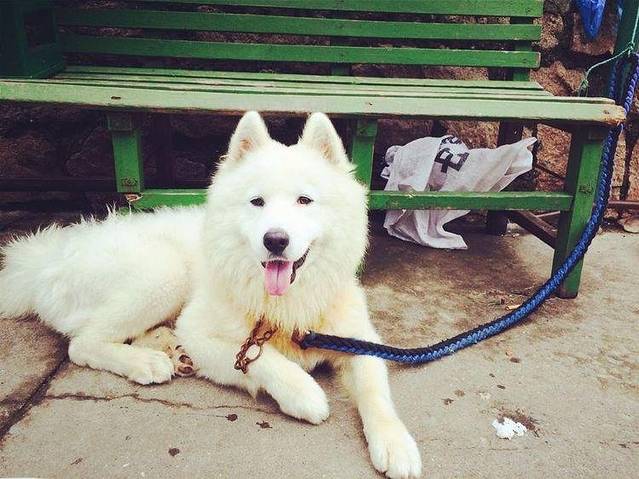 出门吃饭,看到可爱的狗狗,感觉岛上每户居民家中都会养狗,哈哈!