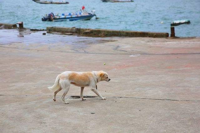 每个海岛都不能少了狗狗,不是吗,这只狗狗在海边悠闲地散步呢~!