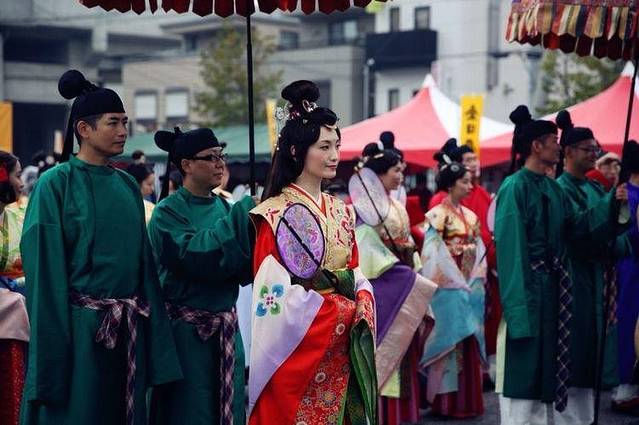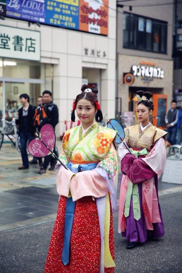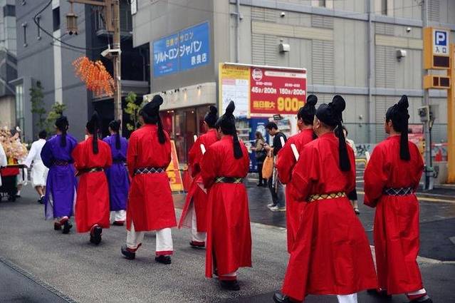 今天碰巧遇到他们的平城京天平祭,在奈良JR站前广场已经聚集了很多人。