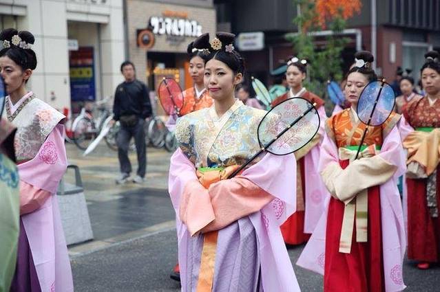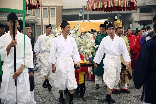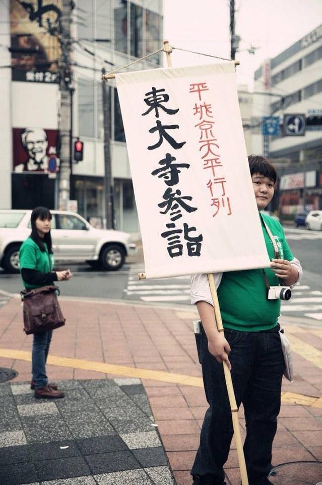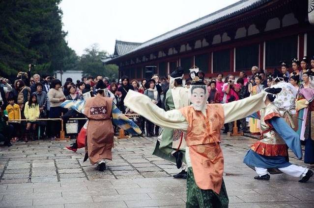 公园和东大寺是在一起的,祭祀的队伍走到东大寺门口,围观的人群越来越多。