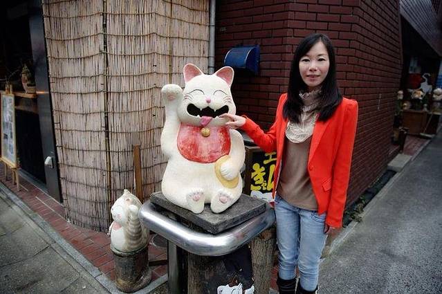 日本人对猫咪的喜爱真是到了极致,小巷里都是陶瓷的小咪。